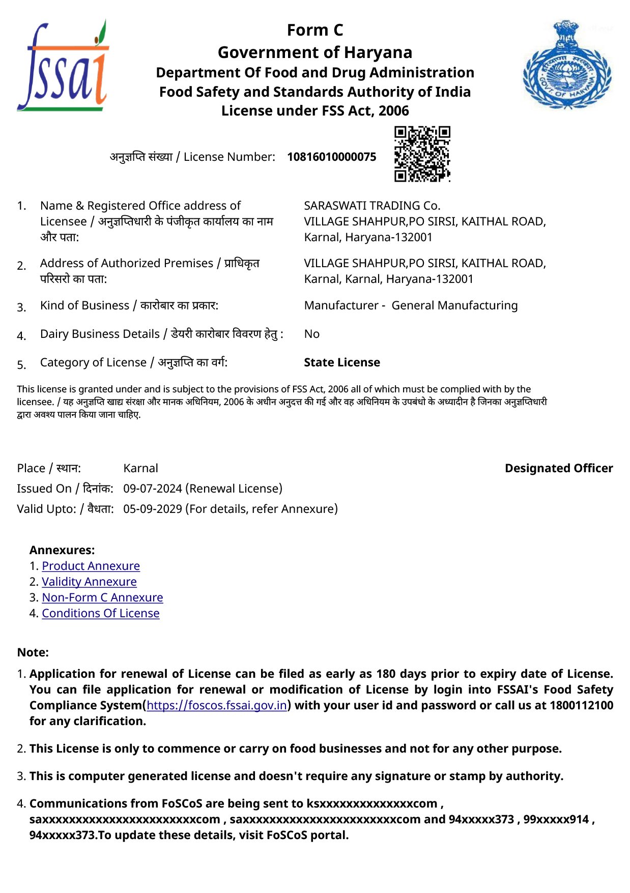 Sahapur, Kaithal Road, Karnal-132001, Haryana, India.